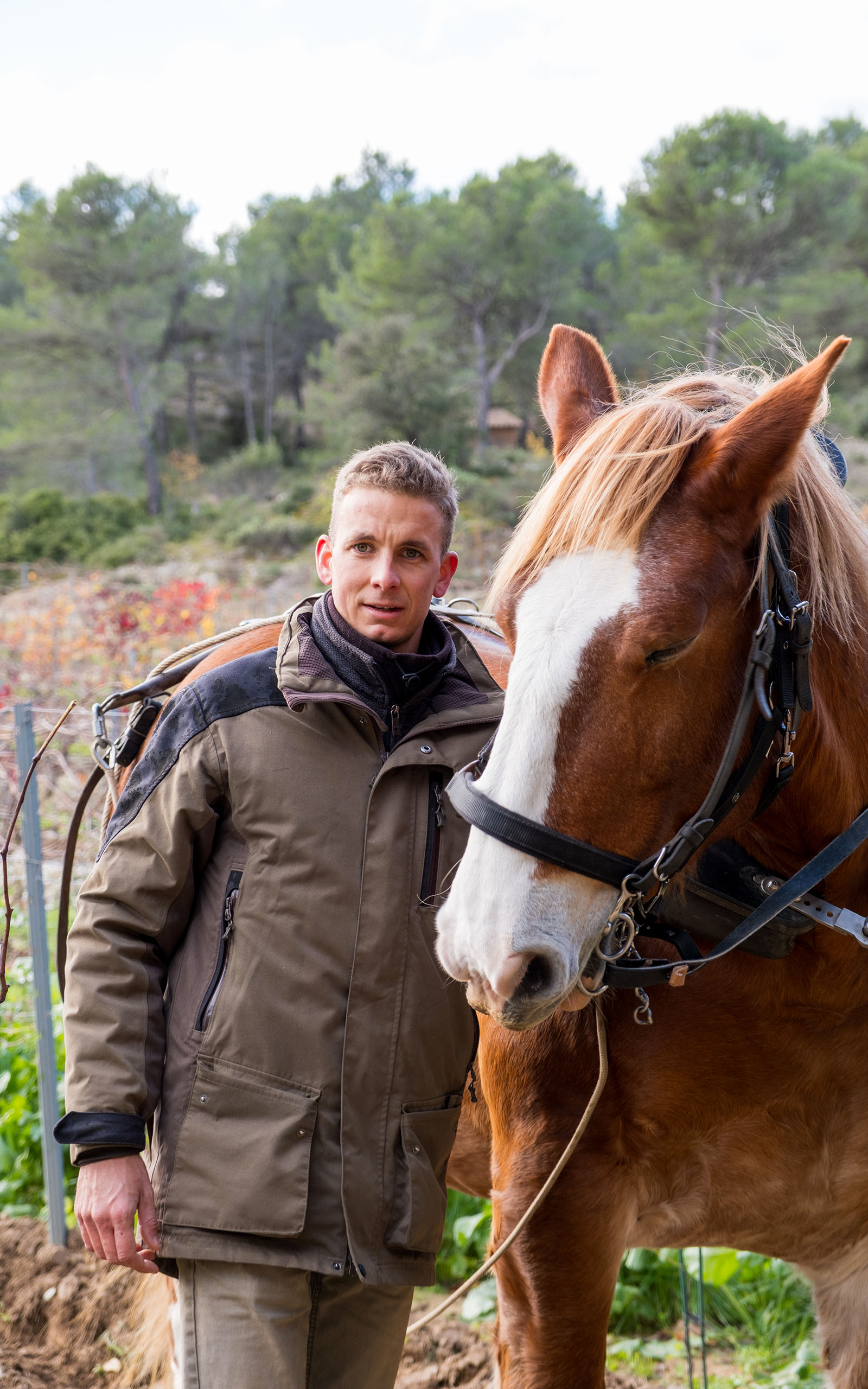 Today, around fifteen hectares of vines — all from massal selections — are cultivated across more than forty parcels, each surrounded by garrigue, pines, and olive trees.